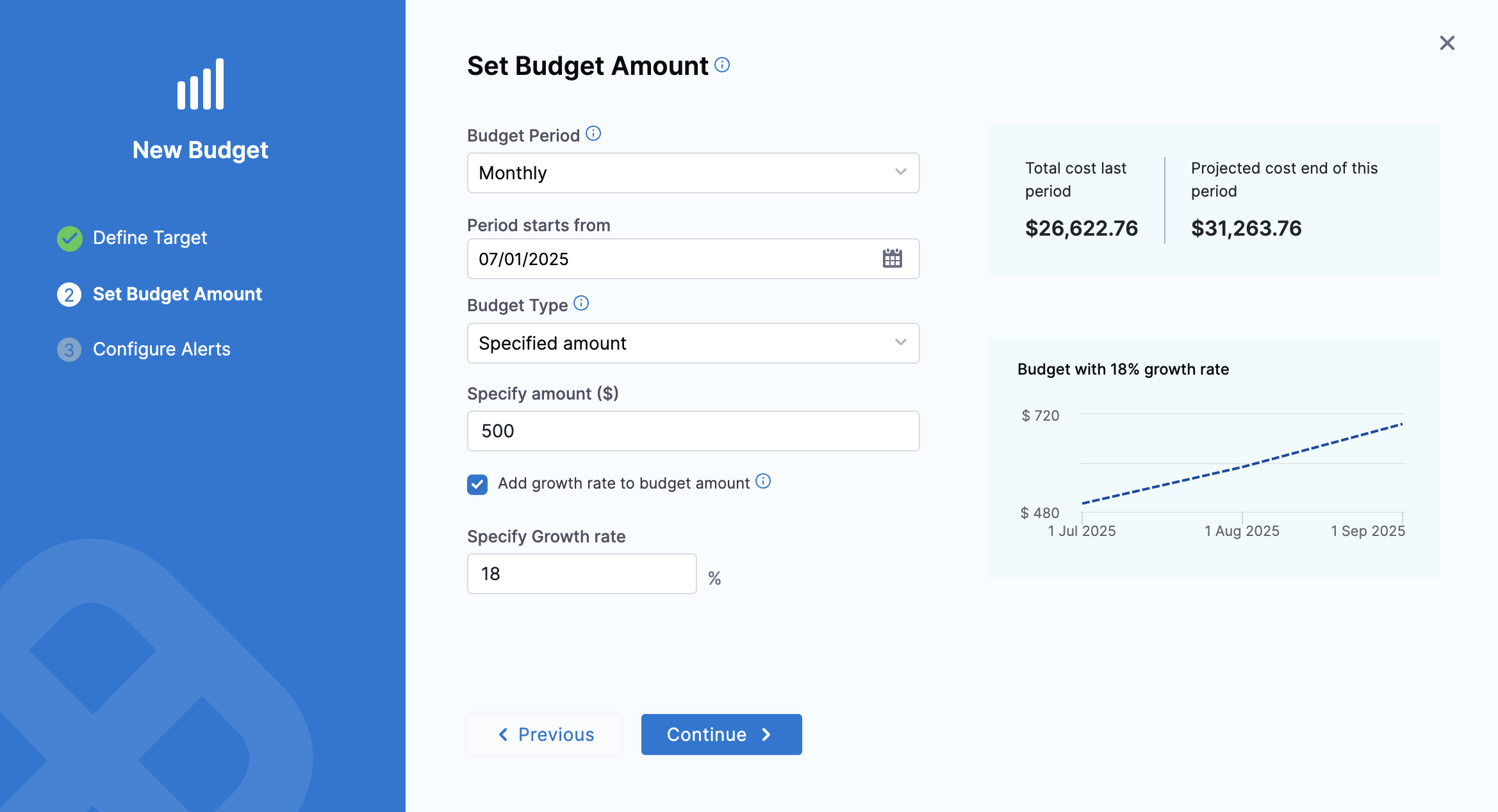 • Previous Month Spend: Sets the previous month spent as your budget.