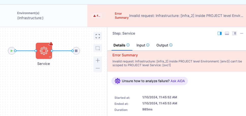 Invalid request: Infrastructure: [NAME] inside PROJECT level Environment: [NAME] can't be scoped to PROJECT level Service: [NAME]