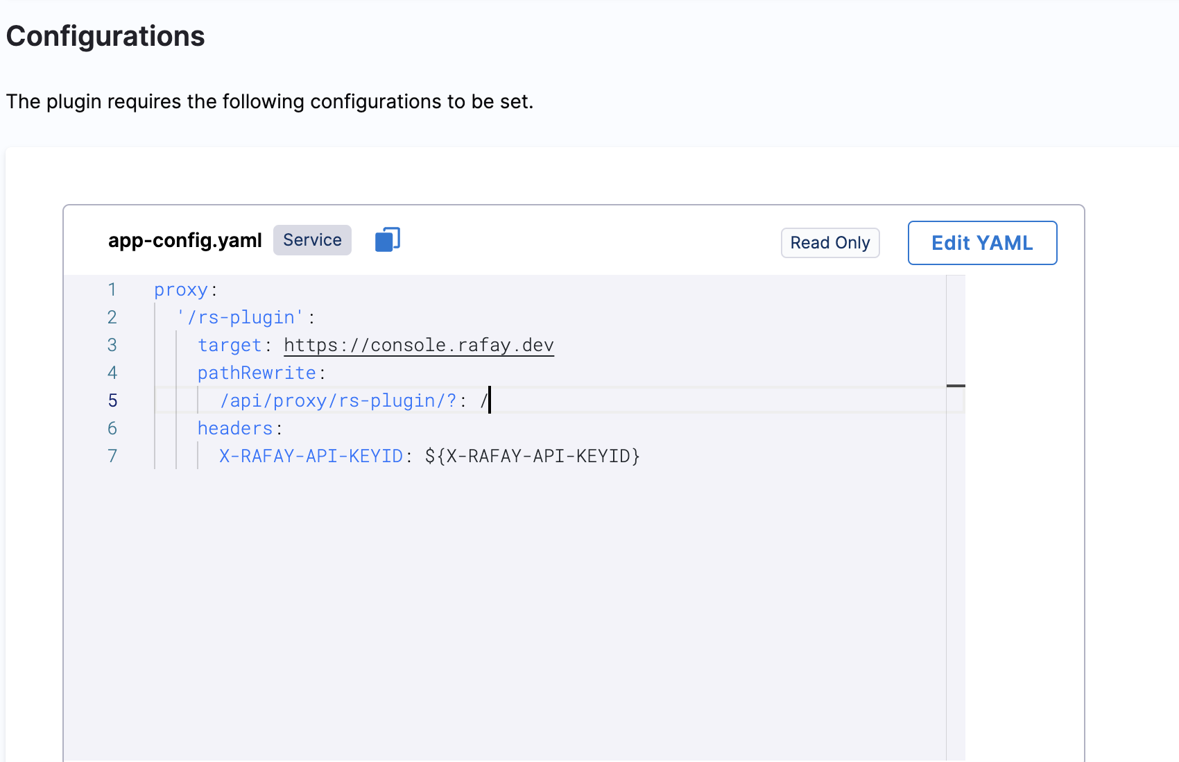 Since the X-RAFAY-API-KEYID variable is used in the application configuration, you must generate a RAFAY API key and set it as the value of variable X-RAFAY-API-KEYID. For information about how to generate an API key, go to the instructions.