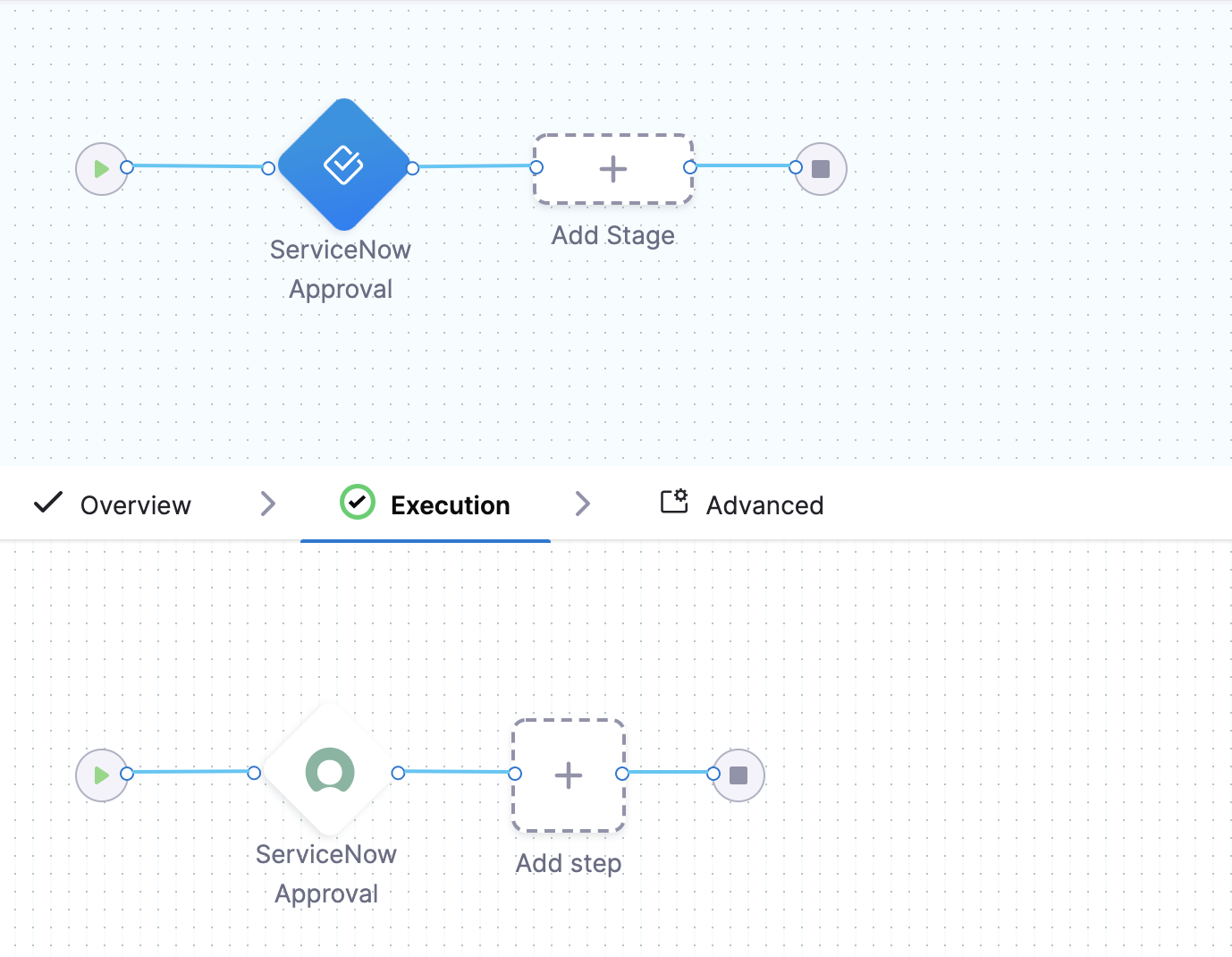 ServiceNow Approval step: you can add a ServiceNow Approval step to any Pipeline or Approval stage.