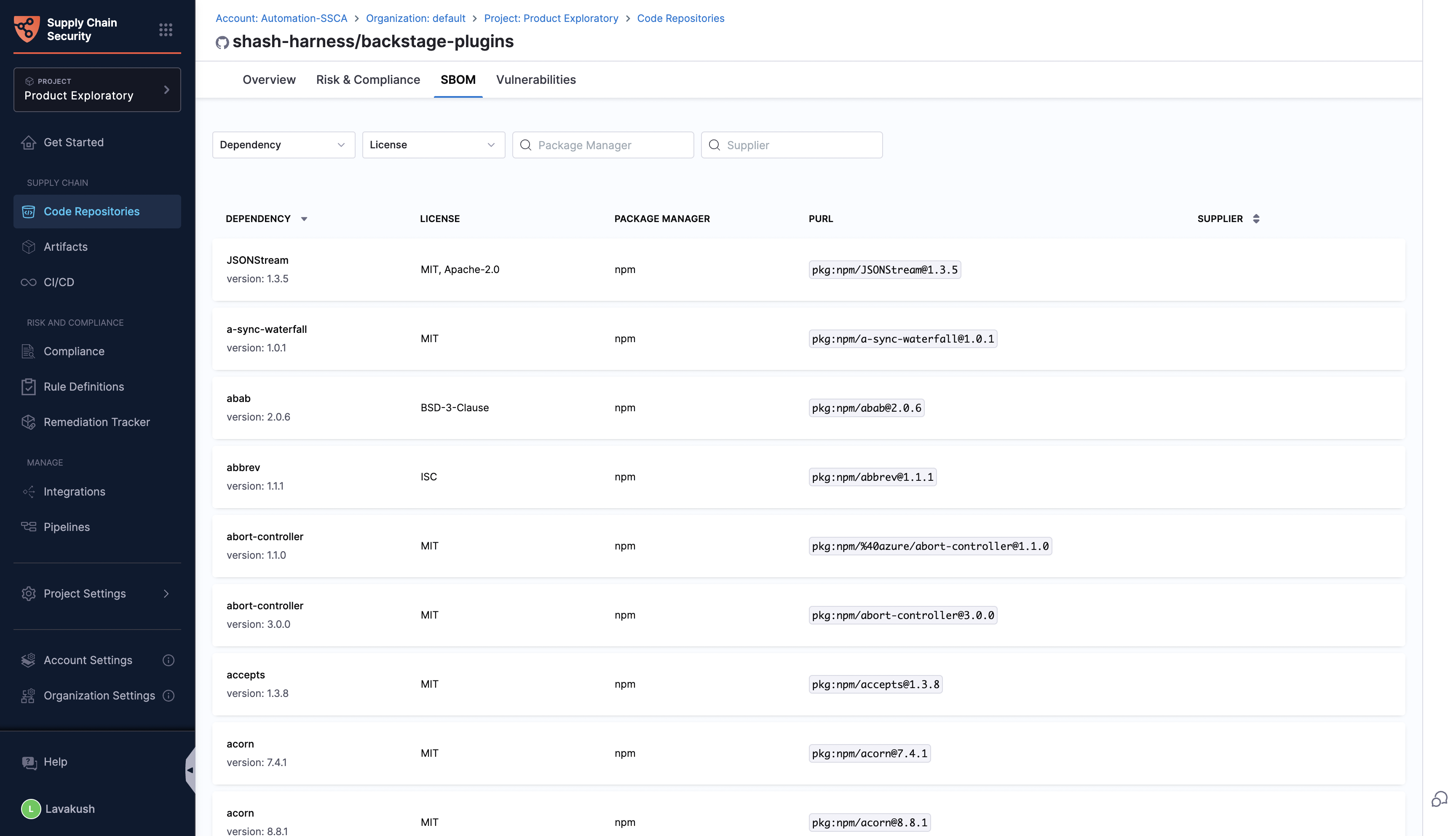 For a complete overview of your supply chain's compliance posture, refer Compliance Summary documentation.