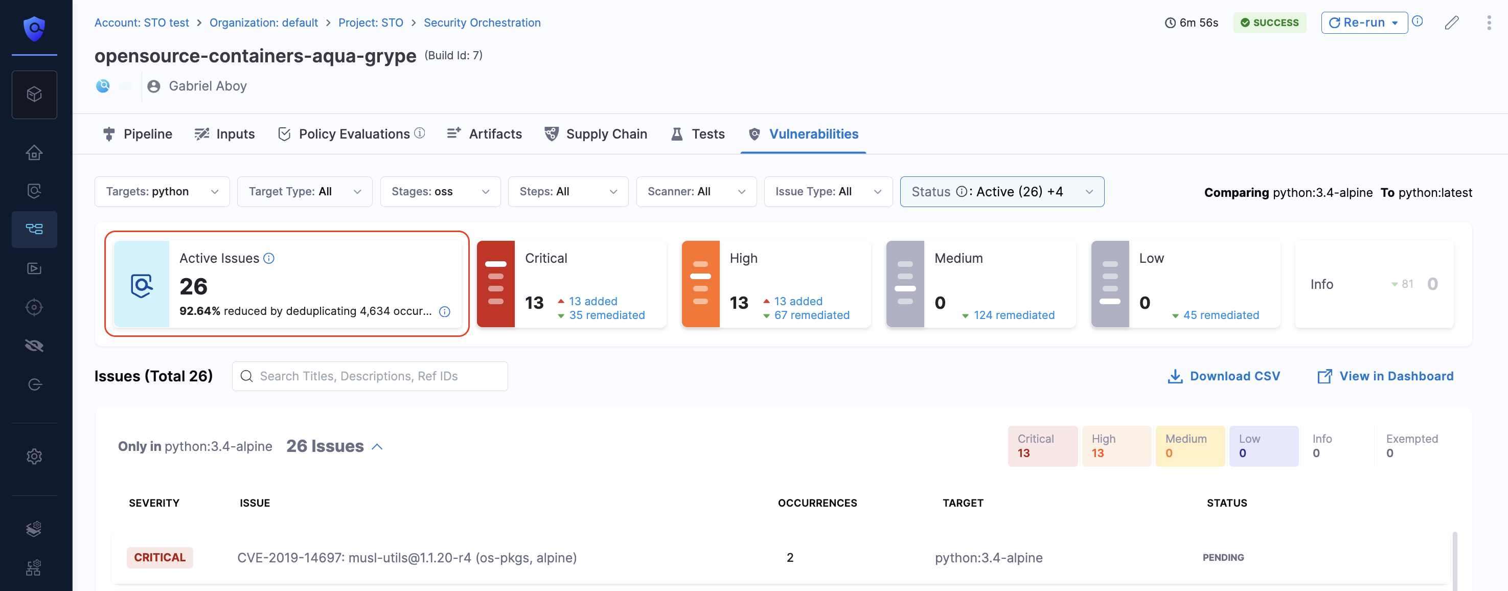 - The View in Dashboard option now redirects you to the Pipeline Execution Summary Dashboard, automatically applying your pipeline execution ID as a filter to view detailed scan results.